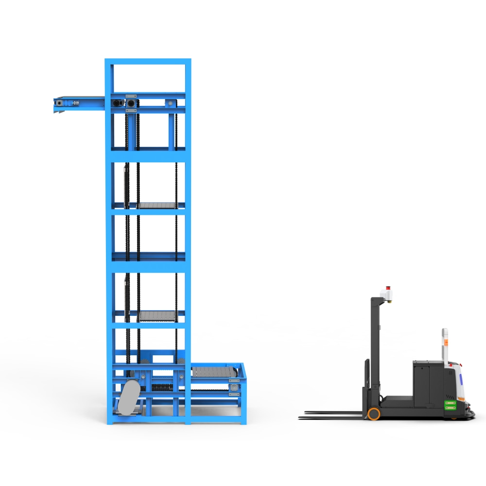 通過往復運動實現AGV與貨梯、輸送線等設備的無縫對接,支持托盤、貨物在立體倉庫或生產線中的跨樓層換層運輸?。結構類型多樣,包括Z型、C型、E型等,可滿足不同進出口方向需求?。