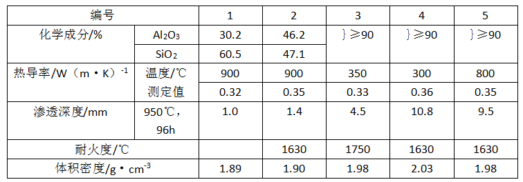 防滲透澆注料采用黏土熟料作耐火骨料,三級礬土熟料作耐火粉料,添加超微粉,用CA-50水泥作結合劑,并加分散劑和硅質或長石類防滲劑。其主要性能:Al2O3 44%,SiO2 49%,體積密度≥2.23g/cm3,110℃和1000℃燒后耐壓強度分別為40MPa和70MPa,1000℃燒后線變化<-0.3%,350℃熱導率約為0.55W/(m·K)。該料用于鋁電解槽側壁炭磚和隔熱層之間,可阻止Na和NaF等物質的滲透,也保護了隔熱層。