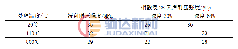 表1-2中編號4的括弧內2.1MPa,是在20%的硝酸溶液中煮72h后測定的烘干抗折強度,與煮前的烘干抗折強度一樣,說明該料的耐酸性極好,且試樣表面完好,無侵透現象。