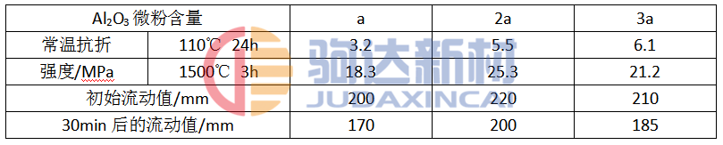 Al2O3微粉添加量對澆注料流動性及理化性能的影響