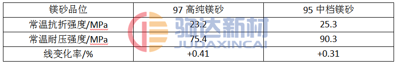 (3)鎂砂的品位越低,澆注料的成本下降,且強度提高,線膨脹變小。