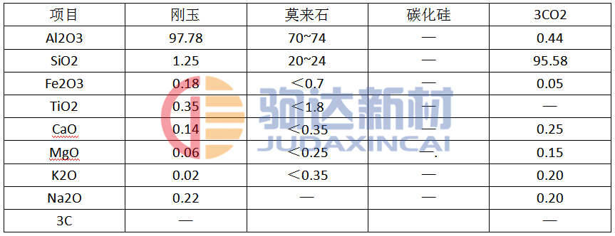 試驗所用的合成莫來石、剛玉、氧化硅微粉和碳化硅的化學組成列于表1。