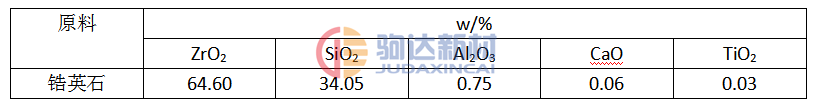 試驗(yàn)所用的主要原料為w(Al2O3)=70.65%的燒結(jié)莫來石(5~3、3~1、≤0.088mm)、w(SiC)=97.9%的碳化硅(3~1、1~0.5、≤0.5mm)、鋯英石細(xì)粉,結(jié)合劑包括SiO2微粉、水泥細(xì)粉(w(Al2O3)=69.3%,w(CaO)=29.7%)和p—Al2O3細(xì)粉。鋯英石的主要化學(xué)組成見表1。