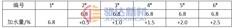 表2 試樣編號與加水量對應表