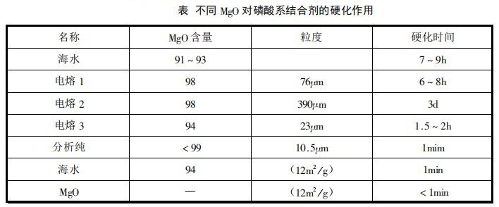 當采用MgO細粉作促凝劑時,在常溫下與磷酸可發生下列化學反應而使磷酸耐火澆注料凝結硬化: